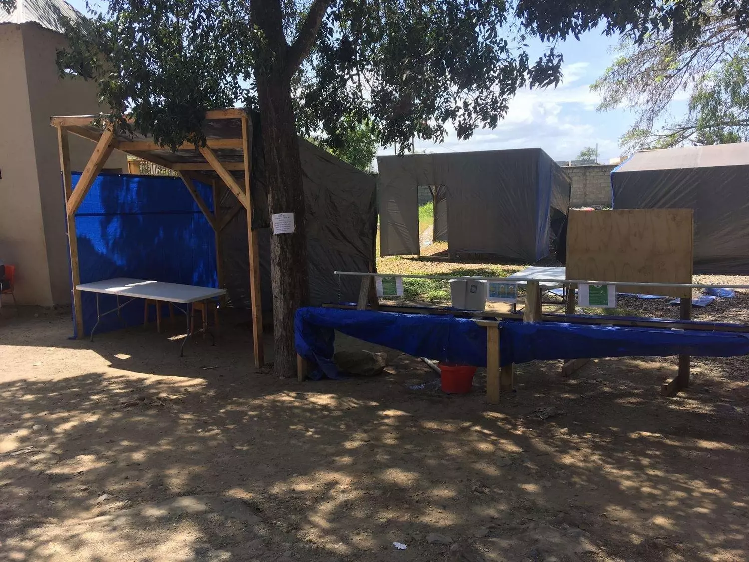 Pictures to the right are of the team preparing the triage area at the front of the hospital. Joe - working hard but staying positive.