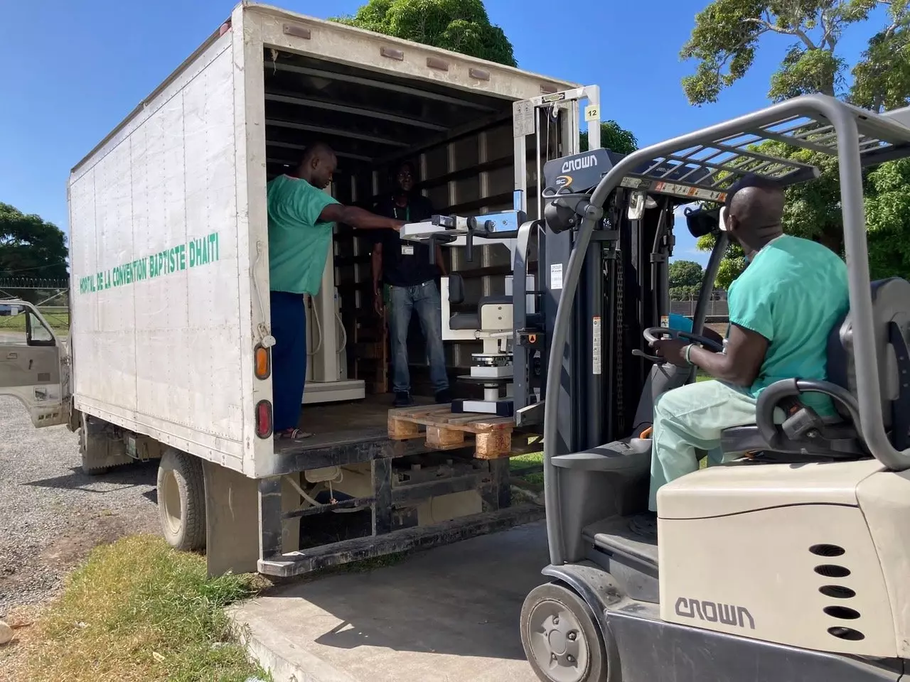 Our long-term friends, Swiss Paraplegic Foundation, kindly donated a range of materials for our rehabilitation unit, including some excellent gym and physiotherapy equipment and a much-needed x-ray machine. We also had some important new solar electrical equipment donated, which our partners Offgrid Energy helped to assemble (pictured being placed in its new home in Haiti). This equipment will significantly improve the power supply situation at our partner hospital, critical when fuel shortages remain such a challenge. A huge thanks to Offgrid Energy for helping to load the container as well!