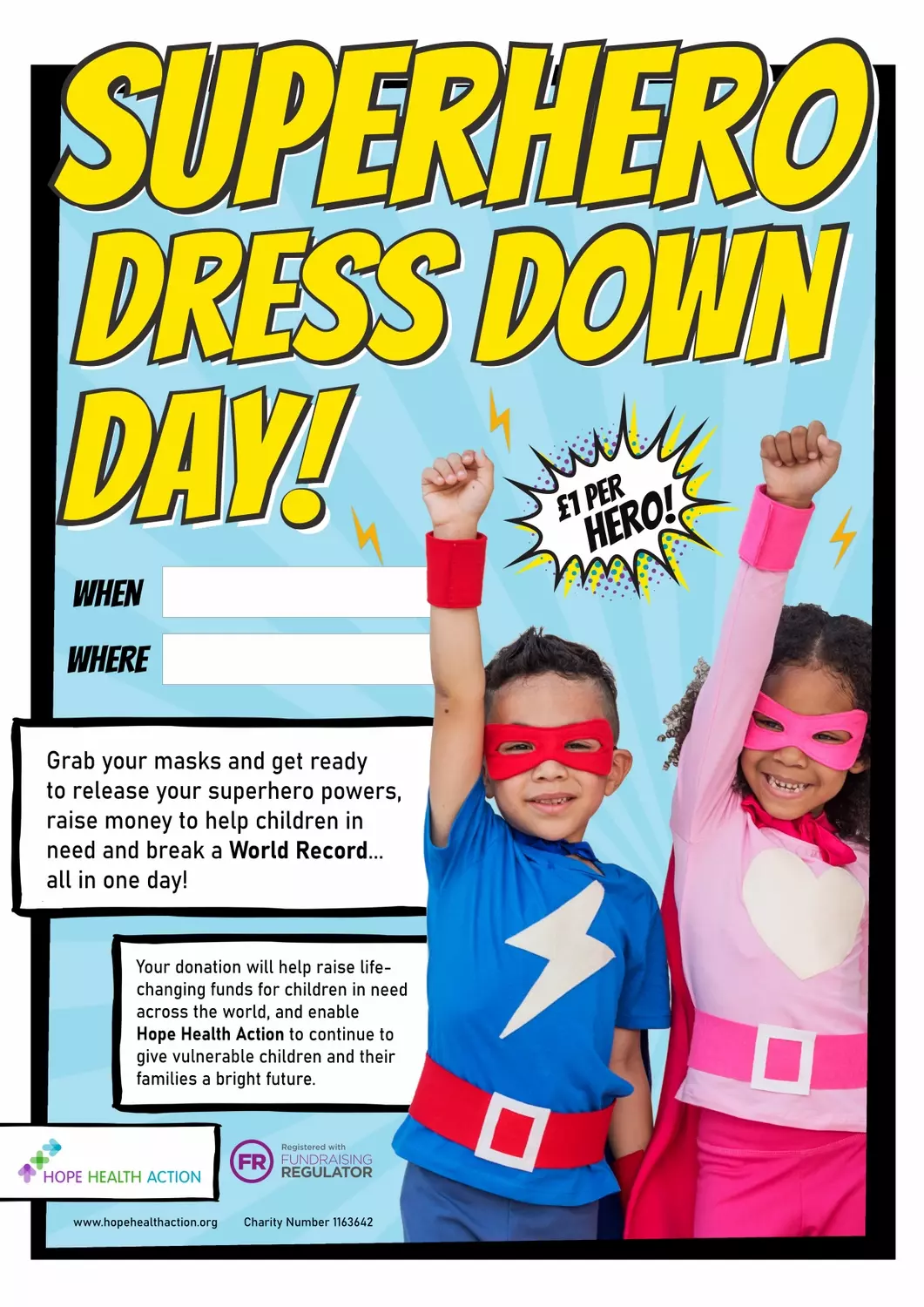 Hope Health Action invites YOU to unleash your inner superhero and raise money to help children in need.